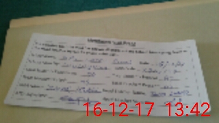 | Monitoring Date: 16-12-2017 | Start Time: 16-12-2017 01:21 PM | End Time: 16-12-2017 01:42 PM | Name of MEA: Za**** Iq**** Kh**** | |