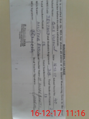 | Certified that this School was Inspected by the Undersigned MEA/DMO Today and the Information Stated Above is as Per Record. | |||||