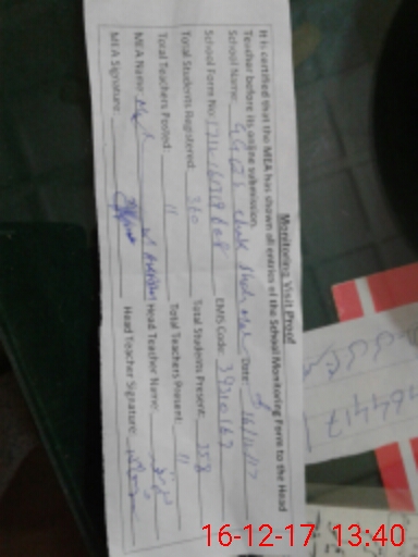 | Attendance Register | Head Teacher | MEA with School | Visit Proof |