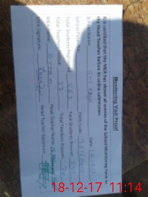 | Attendance Register | Head Teacher | MEA with School | Visit Proof |