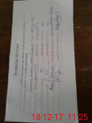 | Attendance Register | Head Teacher | MEA with School | Visit Proof |