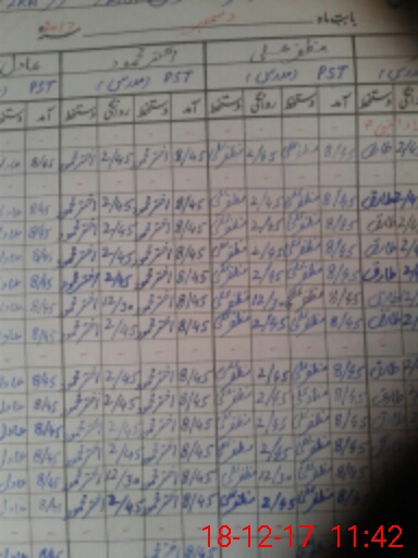| CNIC | Full Name | Designation | R/C | Absence During Last Calender Month |