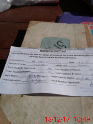 | Attendance Register | Head Teacher | MEA with School | Visit Proof |
