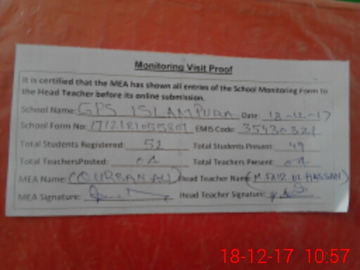 | EMIS Code: 35430321 | Name of School: GPS ISLAM PURA | |||