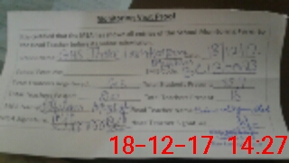 | Monitoring Date: 18-12-2017 | Start Time: 18-12-2017 02:04 PM | End Time: 18-12-2017 02:28 PM | Name of MEA: GH**** MU**** | |