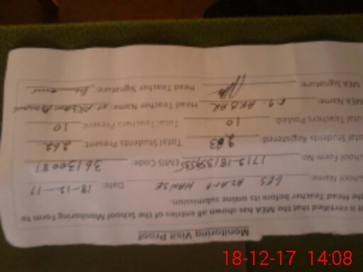 | Certified that this School was Inspected by the Undersigned MEA/DMO Today and the Information Stated Above is as Per Record. | |||||