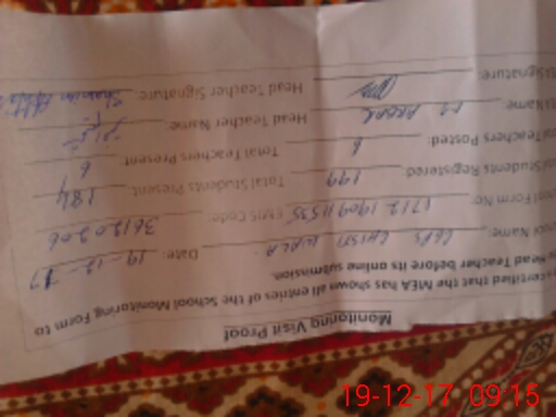 | Attendance Register | Head Teacher | MEA with School | Visit Proof |