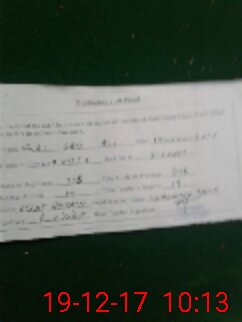 | Monitoring Date: 19-12-2017 | Start Time: 19-12-2017 09:00 AM | End Time: 19-12-2017 10:14 AM | Name of MEA: Al**** Hu**** BN**** | |
