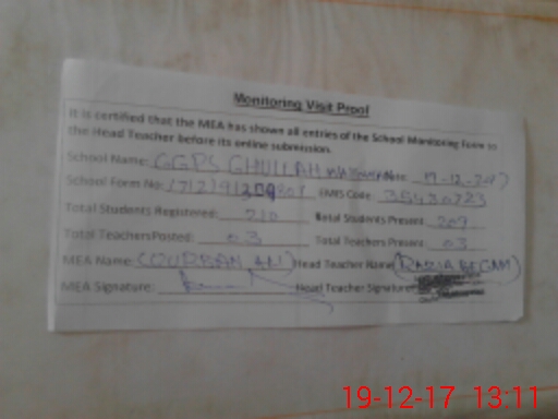 | EMIS Code: 35430723 | Name of School: GGPS GHULLAH WATTOWAN | |||