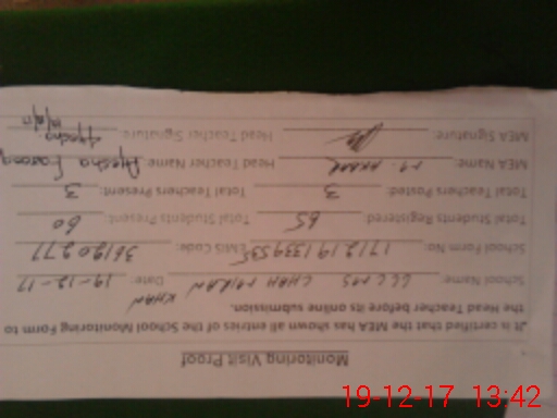 | Certified that this School was Inspected by the Undersigned MEA/DMO Today and the Information Stated Above is as Per Record. | |||||