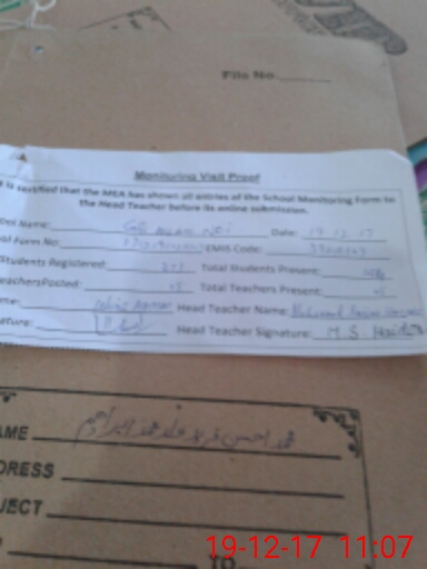 | EMIS Code: 39210107 | Name of School: GPS BASTI ASLAM NOI PAKPATTAN | |||