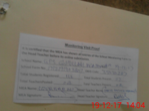 | Attendance Register | Head Teacher | MEA with School | Visit Proof |