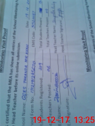 | Attendance Register | Head Teacher | MEA with School | Visit Proof |