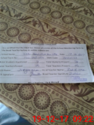 | Attendance Register | Head Teacher | MEA with School | Visit Proof |