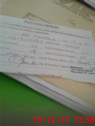 | Attendance Register | Head Teacher | MEA with School | Visit Proof |