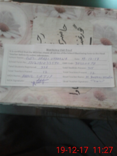| Certified that this School was Inspected by the Undersigned MEA/DMO Today and the Information Stated Above is as Per Record. | |||||