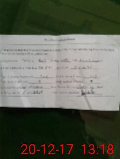 | Monitoring Date: 20-12-2017 | Start Time: 20-12-2017 11:56 AM | End Time: 20-12-2017 01:20 PM | Name of MEA: Al**** Hu**** BN**** | |