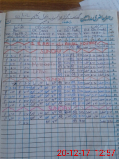 | CNIC | Full Name | Designation | R/C | Absence During Last Calender Month |