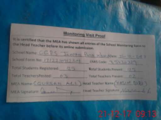 | EMIS Code: 35430729 | Name of School: GGPS JEVEN PURA KHURD | |||