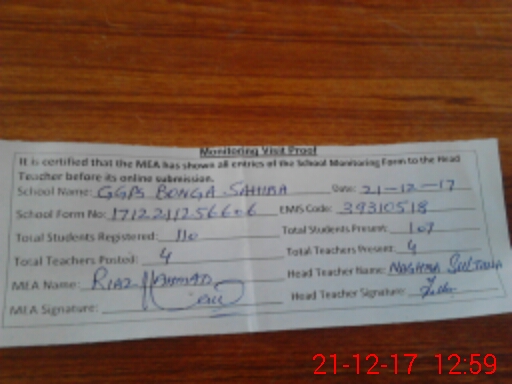 | EMIS Code: 39310518 | Name of School: GGPS BONGA SAHBA | |||