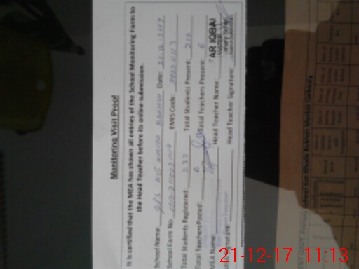 | Attendance Register | Head Teacher | MEA with School | Visit Proof |