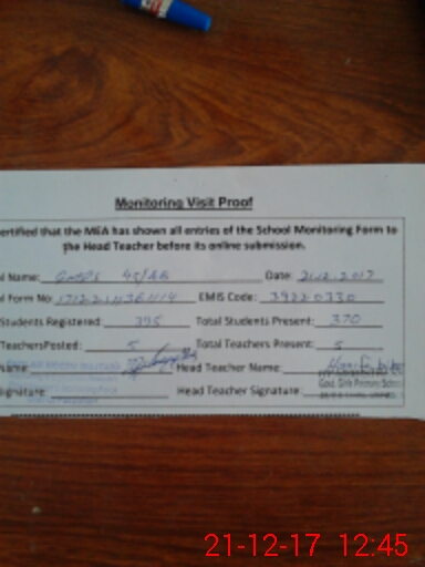 | Attendance Register | Head Teacher | MEA with School | Visit Proof |