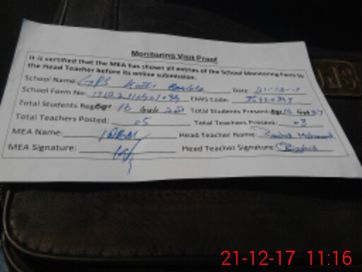 | Attendance Register | Head Teacher | MEA with School | Visit Proof |