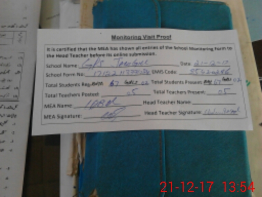 | Attendance Register | Head Teacher | MEA with School | Visit Proof |