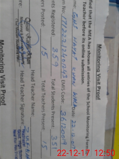 | EMIS Code: 36120019 | Name of School: GHS HAYAT KHAN WALA SHUJABAD | |||