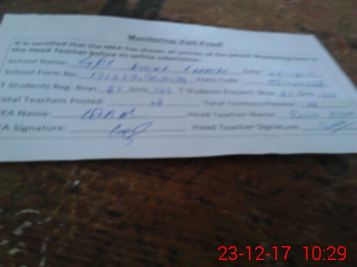 | Attendance Register | Head Teacher | MEA with School | Visit Proof |