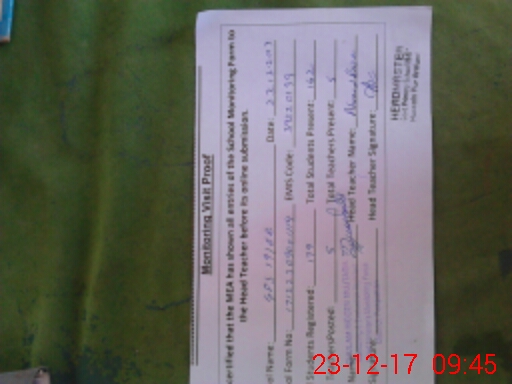 | Attendance Register | Head Teacher | MEA with School | Visit Proof |