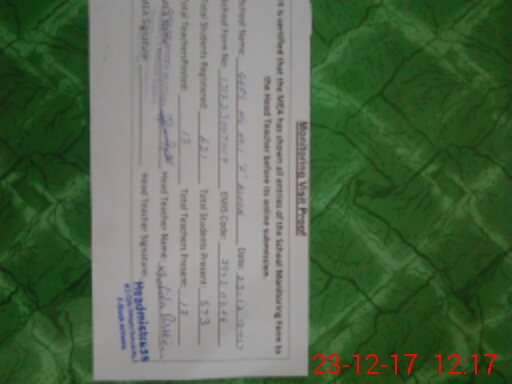 | Attendance Register | Head Teacher | MEA with School | Visit Proof |