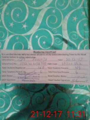 | Attendance Register | Head Teacher | MEA with School | Visit Proof |