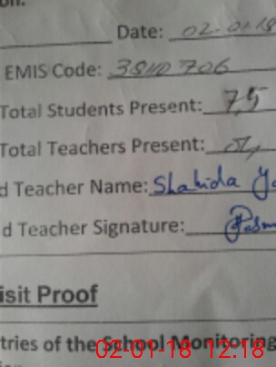 | Attendance Register | Head Teacher | MEA with School | Visit Proof |