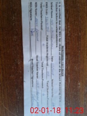 | Attendance Register | Head Teacher | MEA with School | Visit Proof |