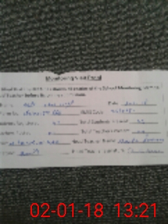 | Monitoring Date: 02-01-2018 | Start Time: 02-01-2018 12:55 PM | End Time: 02-01-2018 01:25 PM | Name of MEA: Mu**** Iz**** UlHa**** | |