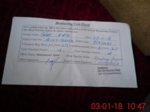 | Attendance Register | Head Teacher | MEA with School | Visit Proof |