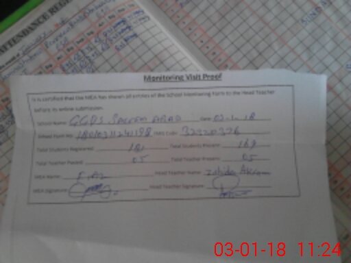 | Attendance Register | Head Teacher | MEA with School | Visit Proof |