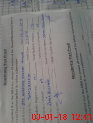 | Attendance Register | Head Teacher | MEA with School | Visit Proof |