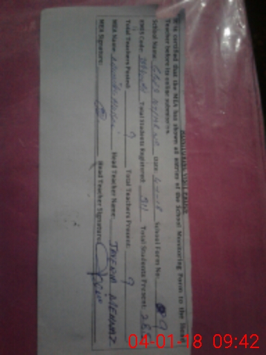 | Attendance Register | Head Teacher | MEA with School | Visit Proof |