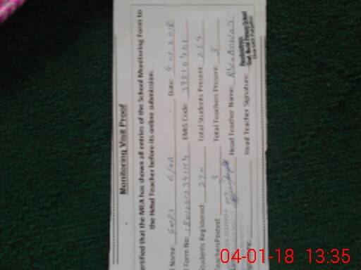 | Attendance Register | Head Teacher | MEA with School | Visit Proof |