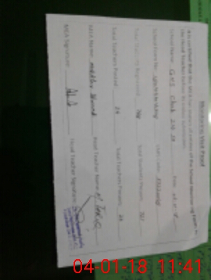 | Attendance Register | Head Teacher | MEA with School | Visit Proof |