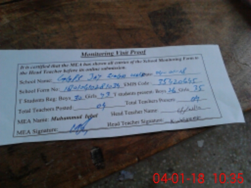 | Attendance Register | Head Teacher | MEA with School | Visit Proof |