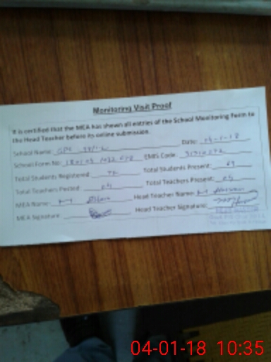 | Attendance Register | Head Teacher | MEA with School | Visit Proof |