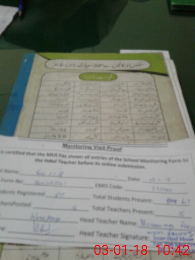 | Attendance Register | Head Teacher | MEA with School | Visit Proof |