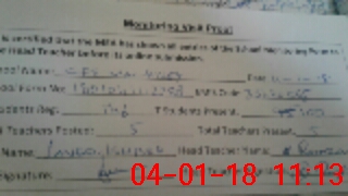 | Attendance Register | Head Teacher | MEA with School | Visit Proof |