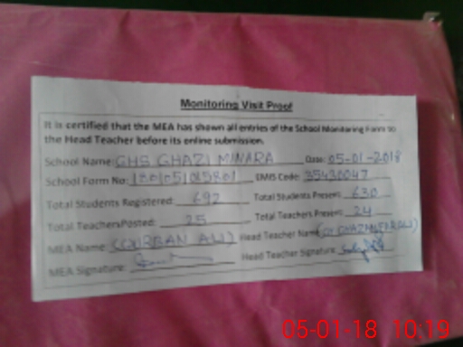 | EMIS Code: 35430047 | Name of School: GHS GHAZI MINARA SHEIKHUPURA | |||