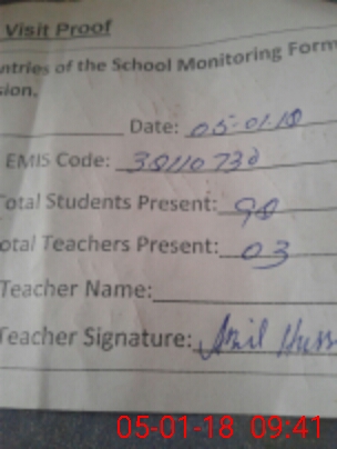 | Attendance Register | Head Teacher | MEA with School | Visit Proof |