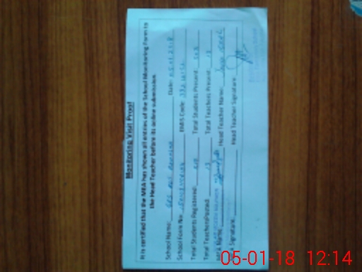 | Attendance Register | Head Teacher | MEA with School | Visit Proof |