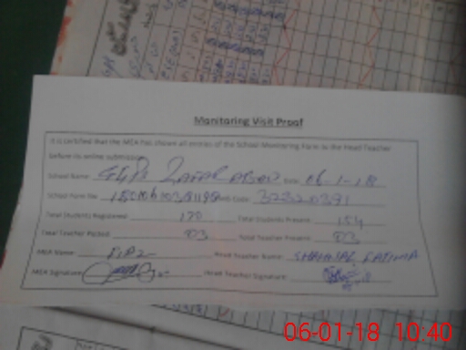 | Attendance Register | Head Teacher | MEA with School | Visit Proof |